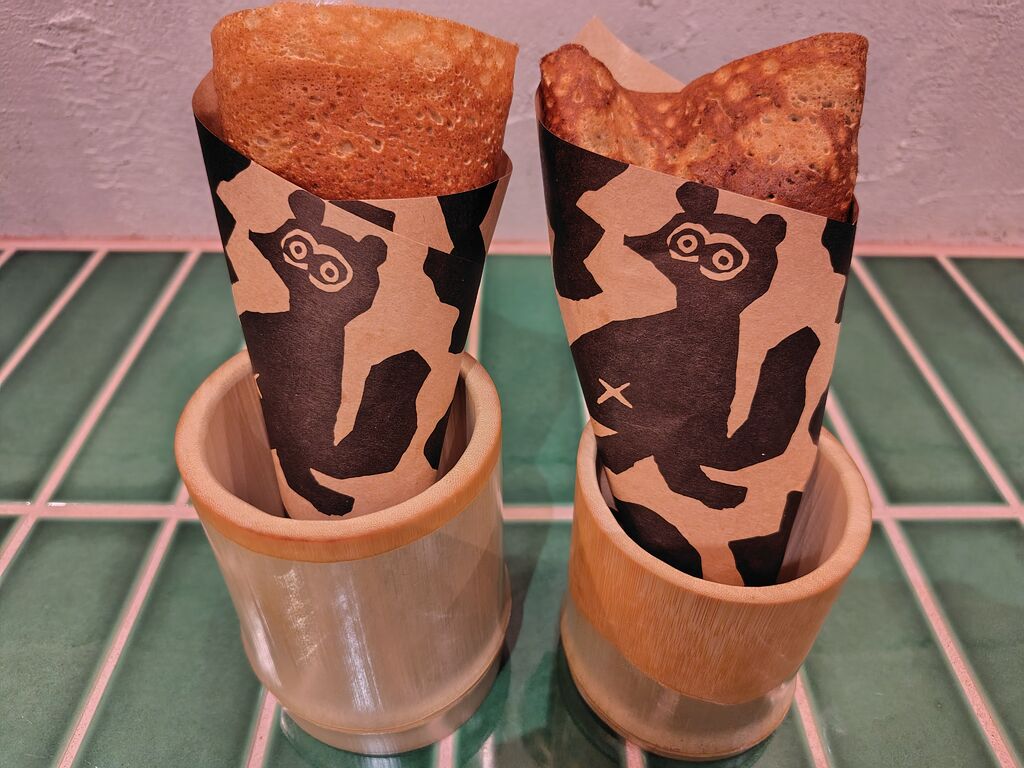 たぬき色の香ばしい焦がし生地クレープとみやげ菓子の店