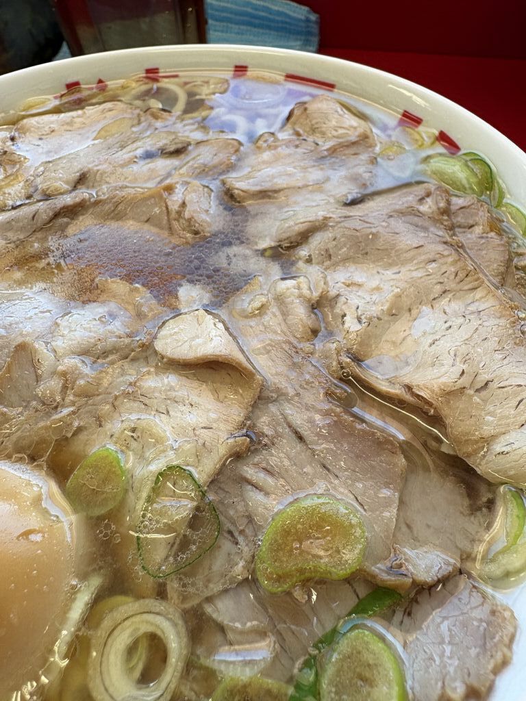 NEWむーちゃん2号店がオープンと知り、行ってみました。行列ができてさすが人気店です。店内は10席のカウンター、メニューはラーメンとチャーシュー麺でトッピングあり。チャーシュー麺は麺を食べ終わっても、どんぶりの底からまだまだチャーシューが出てきます。平日はごはん1杯無料。 (訪問:2026/01/09)