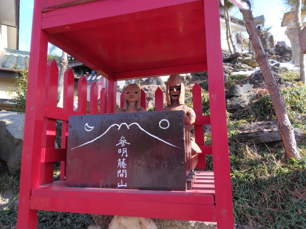 富士山の神、木花開耶姫神をお祀りし、安政4年に万民救済と富士登拝成就、食行身録の教義発展のために祀られました。大先達、山田弟行と先達等が彫られた石碑や、食行が祀られる烏帽子岩など、多くの境内社、石碑があります。