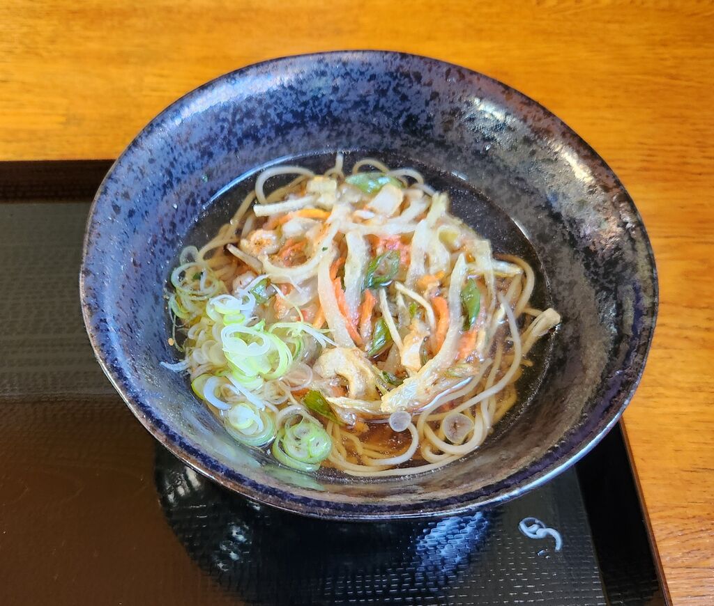 NEW2025年10月13日オープンしたお蕎麦屋さんに初訪問です。注文は私が「もりそば(並) 650円」「天婦羅盛合せ 350円」。妻が「天ぷらそば 850円」。前払いして番号札をもらい待ちます。コーヒー、お茶等がセルフサービス。さっぱりとした喉ごしの蕎麦にカリカリの天婦羅でした。 (訪問:2026/02/23)