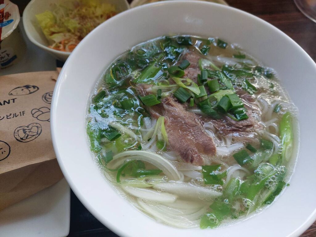 NEWベトナム料理が好きで気になっていたお店に初訪問です!焼き豚肉のバインミー・鶏のフォー・揚げ春巻きをシェア、ドリンクはもも・オレンジ・レモングラスティーをいただきました。バインミーはまずパンがパリパリ香ばしく、具材も味付けが本場の味でかなり好みで美味しかったです!フォーは煮込まれたコクのあるスープに数種類の鶏肉や野菜など具だくさんで、そのままで十分美味しいのですが、卓上のベトナムラー油やにんにくの酢漬け・ヌクマムを入れるとさらに本格的になり、リピートしたくなるお味でした。揚げ春巻きも本場の美味しさ、ドリンクは夏にピッタリな爽やかなフレーバーティーでお料理にも合っていました。お店は今年5月から営業されているそうで、靴を脱いでアットホームな雰囲気で居心地もよかったです。ご馳走さまでした(๑´ڡ`๑) (訪問:2025/09/06)