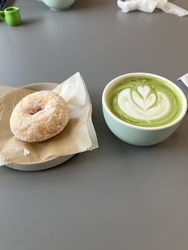 NEWちょっと前にオープンしたこちら、気になっていたのもあり17時少し前にお邪魔しました。大きな窓があり開放的な空間、どこの席にいても空を感じられ大きく息を吸い込んでボーッとしたくなる、そんな居心地の良さ。先にオーダーとお会計を済ませるシステムで、『LATTE680円』『シナモンシュガー300円』をオーダー。ドーナツが4種あり迷いましたが、シンプルに、でもちょっと香り良くと、シナモンチョイス。ドーナツは外側はサクッ、中身はふんわ~り、もちっ!な食感。お砂糖は少なめで甘すぎず、脂っこさもなくシナモンが香り美味しい♪合わせるラテはミルク感強めな印象ですが、後味が珈琲の良いお味でスッキリ~☆読書のお供にぴったり!素敵な時間を過ごさせていただきました。また帰りに気になっていた『ストロベリーチョコドーナツ400円』をテイクアウト。ドーナツ、本当はテイクアウトは予約制のようですが、伺った日は閉店間近で在庫があったことからOK頂きました‼チョコが甘すぎず、もちっと食感のドーナツとの相性抜群^^こちらもウマウマでした。オープンから12時までの限定で、ドーナツサンド(生ハムとマスカルポーネ/キャロットラペとベーコン)もあるそうで、すごーく気になります‼是非またのんびりお邪魔したいですが、4月から営業時間が変わり16時までになるとか。今度は余裕もってのんびりお邪魔したいです。 (訪問:2026/03/22)