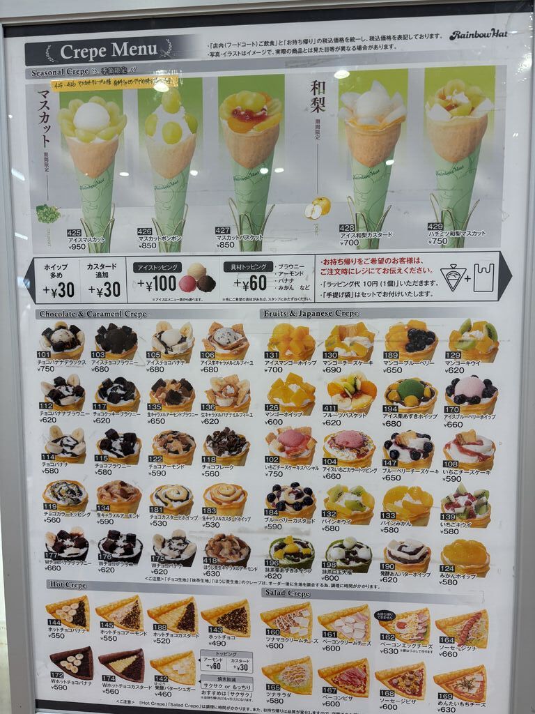 お買い物途中クレープおやつタイム♪私はほうじ茶栗あずきホイップ、娘はクッキークリームカラートッピングに。もちもちの生地にたっぷりホイップが詰まっていて、中にもちゃんと栗やサクサクのお菓子、あんこが入っていて美味しい〜!好きなアイスを乗せてもらえるのも嬉しいです♪なかなかのボリュームでお腹いっぱい幸せでした(^^)主人にテイクアウトした生キャラメルアーモンドブラウニーも美味しかったとのこと。今度はパフェも食べてみたいです♪ (訪問:2025/12/17)