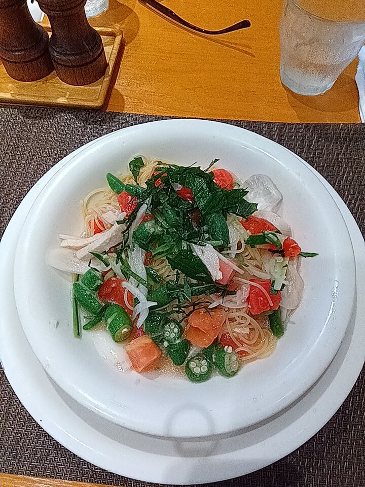 隠れ家的なイタリアンレストランです。メインを注文するとピザの食べ放題がついてくるときいて、日曜日のランチタイムに伺いました。人気店らしく、記名して席に案内されるのを待つタイプのお店です。テラス席もあってワンちゃん連れの方がおられました。前菜サラダ(またはスープ)、パスタランチ(夏野菜のカッペリーニ)、本日のドルチェ、アイスコーヒーをチョイスしました。サラダはピタパンに挟んでいただきました。手作りのドレッシングがいいお味でした。メインのパスタは夏季限定で野菜がふんだんに使われていてサッパリといただけました。ピザは中央のテーブルに焼きたてが出てくるのを待って、取りに行くスタイルでした。薄いクリスピー生地にペパロニやハム、カレー風味、ツナなど数種類、焼きたてが出てくるスタイルでした。満腹になるまでいただきました。季節のドルチェも美味しかったです。また違う季節に行きたいです。 (訪問:2025/09/21)