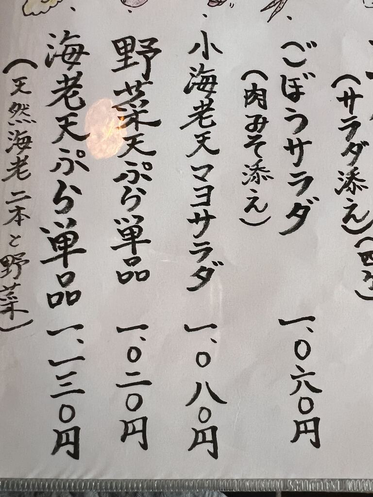 | 小エビ天サラダそば | 1,100円 |