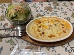初めて妻との訪問です♪書き込みを見て気になっていました。落ち着いていて、ゆったりとした空間でのんびり食事が出来ました!黒板にある〈おすすめ〉メニューとグランドメニューの中から悩みに悩んで、私は洋風ハンバーグ、妻はドリアをオーダーしました♪ハンバーグは柔らかく少し甘めのデミソースドリアは熱々とろーりでとっても美味しかったです♪また訪問したいお店です(^^) (訪問:2026/04/03)