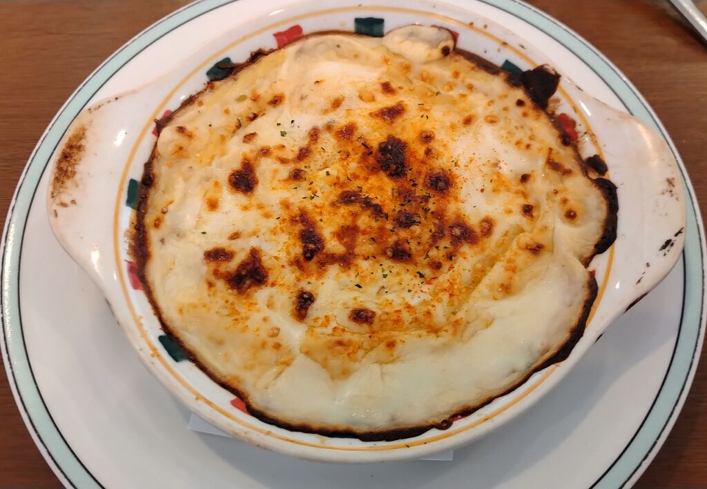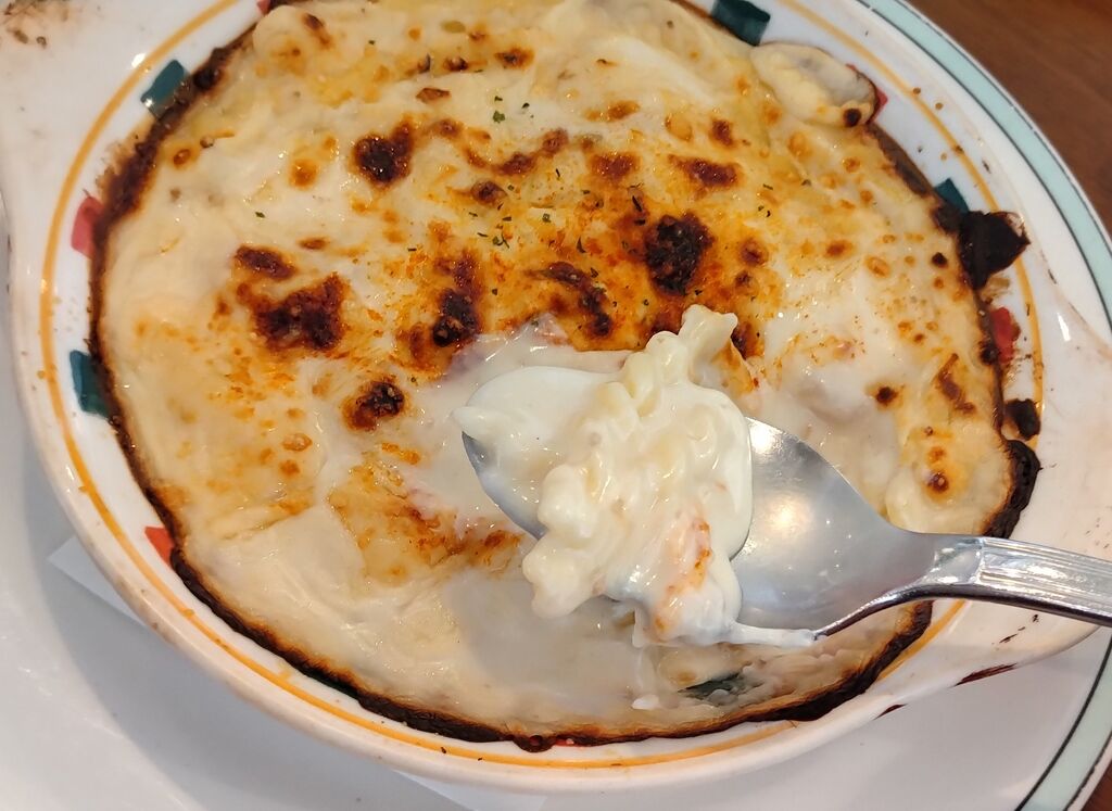 平日午後訪問。暑い日に更に熱いのが食べたくなり<海老グラタン>を、単品で<コンビサラダ>と<アイスレモンティー>も注文しました。サラダのドレッシングは、和風/サウザン/中華から選べます。アスパラやキュウリがみずみずしく大好きなサラダです♪グラタンも濃厚ながらクドさがなく最後まで美味しく完食出来ました! (訪問:2025/09/02)