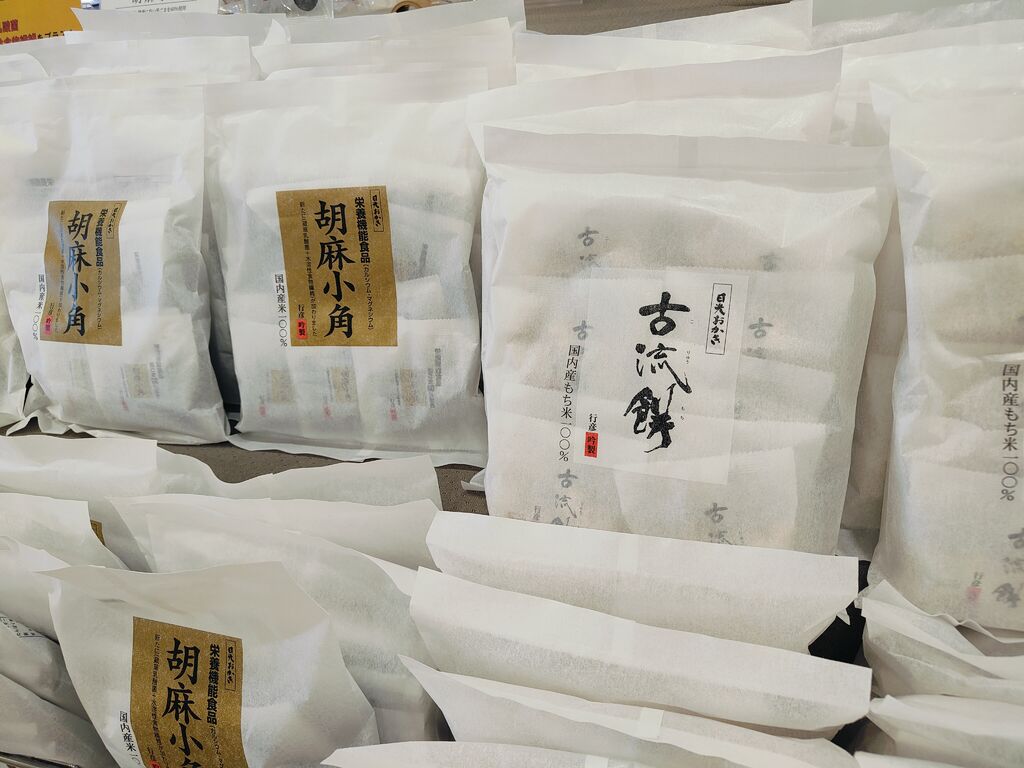 一日平均来店者数は1,000名以上。日光名水・国内産米100%使用のおかき•煎餅を、見て、触れて、満喫できる製造直売店。試食ができるので、匠の心•一子相伝の技が織りなす商品を楽しみながら選べます。無料ドリンク、休憩スペースあり。