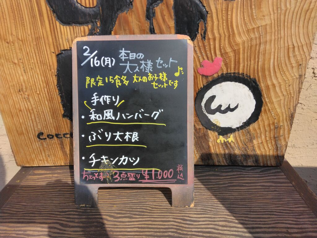 開店7分前に到着(o゜▽゜)o☆ ウェイティングボードがあり、名前を記入して待つスタイルでしたぁ(●ˇ∀ˇ●) 「限定15食 本日の大人様セット×2」を注文出来ましたぁ☆*: .。. o(≧▽≦)o .。.:*☆ 「手作りハンバーグ」「ぶり大根」「チキンカツ」のちょっとずつ3点盛りヾ(≧▽≦*)o マカロニサラダもついて、嬉しいぞ(⋈◍>◡<◍)。✧♡ ゴハンは、白米か五穀米か選べて、「小」「中」「大」と、量も選べます°˖✧◝(⁰▿⁰)◜✧˖° 中にしたけれど、多かったので、小でも充分だったなぁ...(*Φ皿Φ*) お冷と、お茶はセルフでしたぁ,,ԾㅂԾ,, 帰り際にも、待ちのお客さんもいて、大盛況щ(ʘ╻ʘ)щ 店員さんたちも、みなさん明るく、活気があります(๑•̀ㅂ•́)و✧ 入口には、ブランケットも用意されており、お借りして、暖かく、お食事が出来ました(((o(*゜▽゜*)o))) (訪問:2026/02/16)