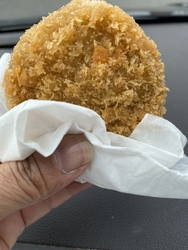 メンチカツ、ハムカツ、ササミカツと行くとどうしてもたくさん買いたくなります。待ちきれず車の中でメンチカツをいただきました。 (訪問:2025/11/01)