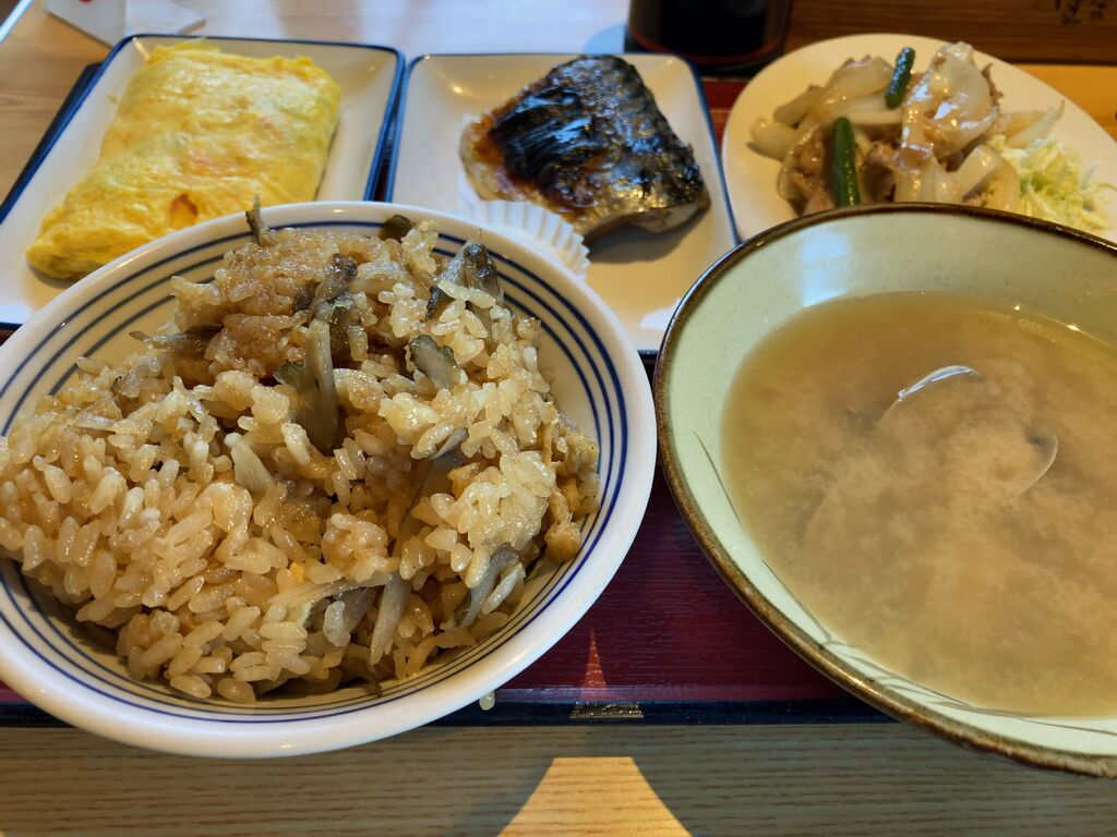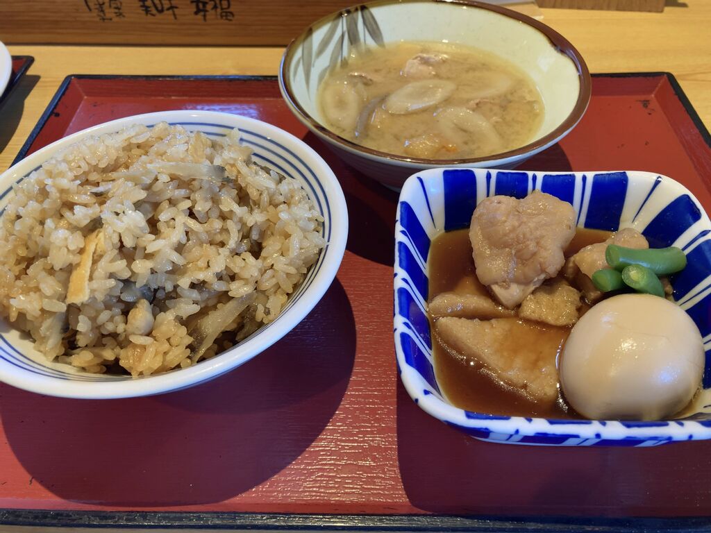 焼き魚、卵焼き、豚肉のチーズいため、鶏と卵の親子煮、鶏とごぼうの炊き込みご飯、あさりの味噌汁等をいただきました。冬のフェアメニューの豆腐と茄子揚げが在庫切れだったので、店員さんに聞いたら、五分程で作って出していただけて、揚げたてでとても美味しかったです。 (訪問:2026/01/05)