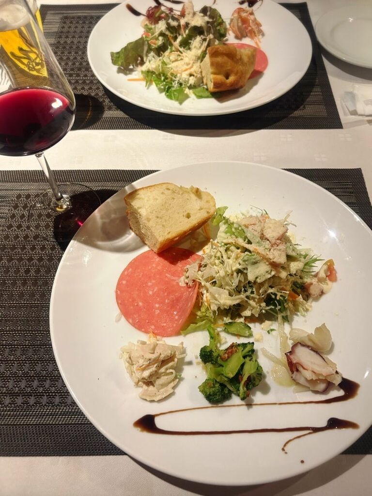 今年も忘年会でお世話になりました。毎回、前菜盛り合わせが楽しみです♪パスタも何種類も楽しめて、お腹いっぱい!店内右手にある個室が貸切にできるので、のんびりワイワイと楽しめました。街中なのに広い駐車場完備なのも助かります。ぜひまた来年もお願いしたいです! (訪問:2025/12/19)