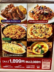 NEW日曜日の11時頃訪問し、ランチをいただきました。入店時はそんなに混んでいませんでしたが、続々とお客さんが来店して12時頃にはほぼ満席になりました。料理コーナーには並ぶ人の列が出来ていました。期間限定でチョコレートファウンテンがデザートコーナーにあり、ちびっ子達が楽しそうにやっていました。メニューはピザやパスタ、リゾット以外にチキン煮込み、ジャンバラヤ、フライドチキン、カレー、シチュー、グラタンなど沢山ありました。サラダも彩り良く種類豊富なので嬉しいです。目の前の厨房ではスタッフの方が次々と料理を作り、ピザなどが無くなるとすぐ補充してくれます。デザートはモンブラン風味のプチシュークリーム、かぼちゃのケーキ、チョコケーキ、ベリーのチョコレートムース、はちみつ柚子ジュレ、白玉ぜんざい、タピオカなど美味しくいただきました。また、自分でワッフルが焼けるので出来立てが食べられます。デザートソースやナッツ、チョコクランチなどのトッピングも色々あり、楽しみながら作れます。美味しいものばかりでついつい欲張ってしまい、今回も苦しくなる位食べてしまいました(^-^; (訪問:2025/10/26)
