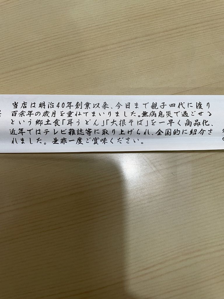 テレビで拝見し、ずっと食べたくてやっと伺うことができました。初めて耳うどんをいただきました。モチモチの耳うどんと具沢山の出汁の効いた汁が絶品でした。また伺いたいです。 (訪問:2025/11/30)