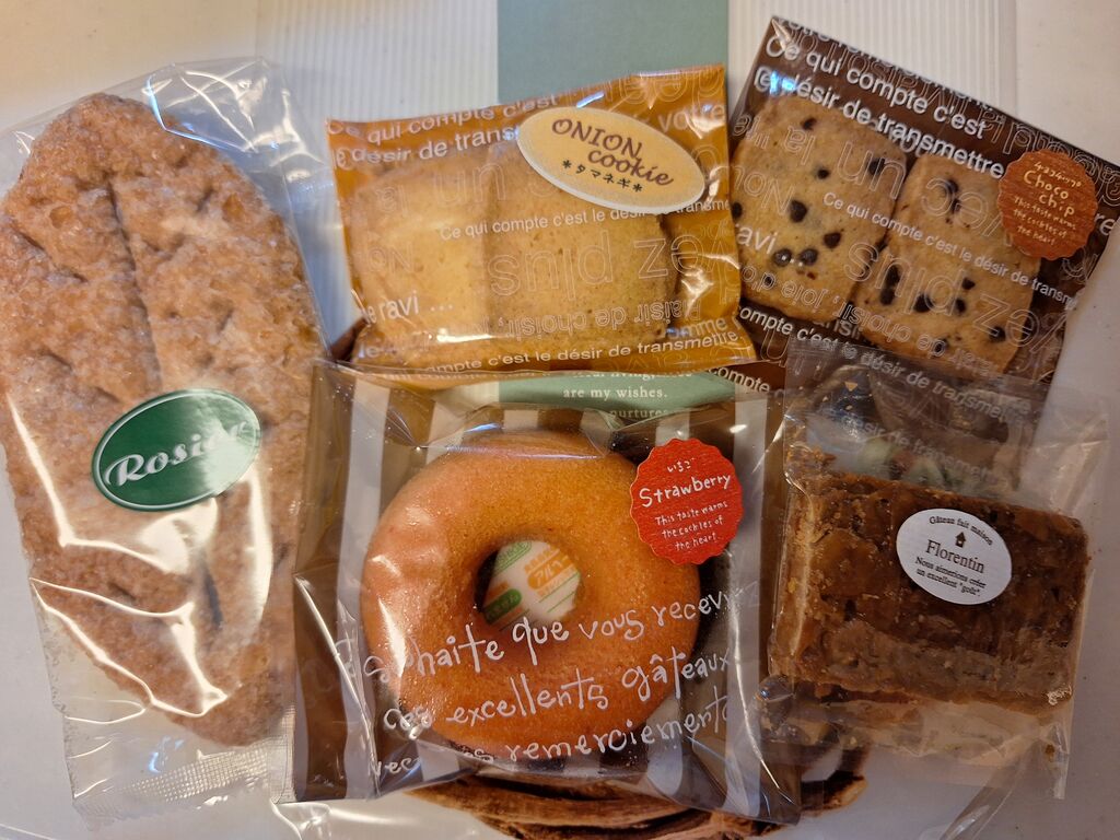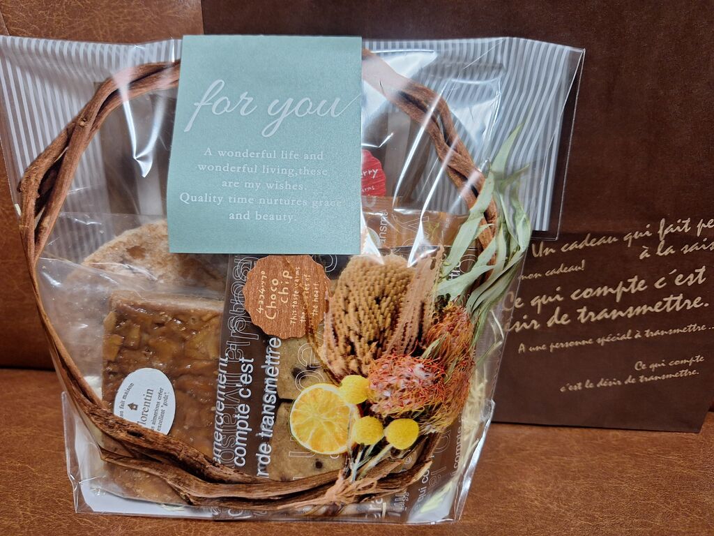 焼き菓子の詰め合わせをいただきました☆お店一押しの“焼きドーナツ”に、種類豊富なクッキーはチョコチップにオニオンも。予算に応じて色々な可愛いラッピングをしていただけるそうです(^ー^) (訪問:2025/09/29)