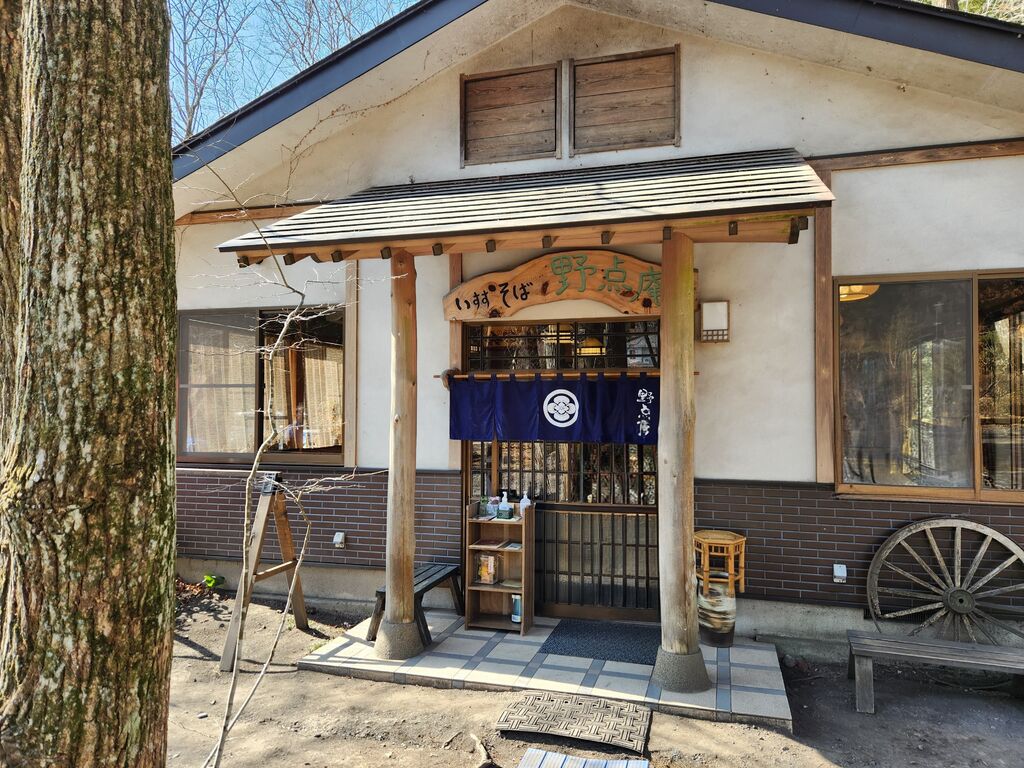 お盆の中日、日光夏そばスタンプラリーに載っていたこちらに1人ドライブで初来店しました。駐車場が手前にあり、歩いて林の奥へ。鳥の声と虫の声に囲まれたお店があります。駐車場は、店の前の奥にもあり、狭い道を来られるなら奥が便利です。車もいっぱい、待つ人もたくさんでした。30分ほど外でまち、十割そばは終了になりました。待っていると、記名した人までで終わりとのお知らせが。呼ばれて入り、せっかくなので野点庵セットのフルコースを注文しました。はじめのそばがきが、フワフワもっちりで、甘いみそ餡とつけるネギ醤油が、味変できて嬉しい。そばはもちろん、そば雑炊とそば饅頭もほっこり優しい味。天ぷらの舞茸が、分厚くて美味しかったで、大まんぞくです。スタンプもしっかりおしてもらい、大満足で帰りました。 (訪問:2025/08/14)