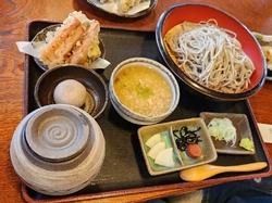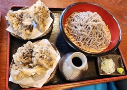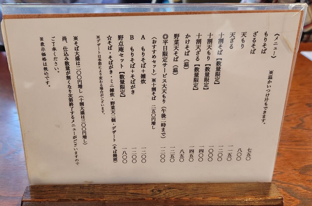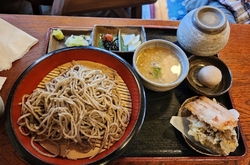 15年ぶりに伺った『野点庵』さん。相変わらず混んでいましたが、名前を記入してから30分程度で呼ばれお店に入ることができました。初めにしっかり目のもちもちとした[そばがき]が運ばれ、その後[天もりそば]が。ピーマン・甘い人参・なす・舞茸の天ぷらを抹茶塩で、コシがありそばの香りもしっかりしているそばを濃すぎないそばつゆでいただきとても美味しかったです! (訪問:2025/10/12)