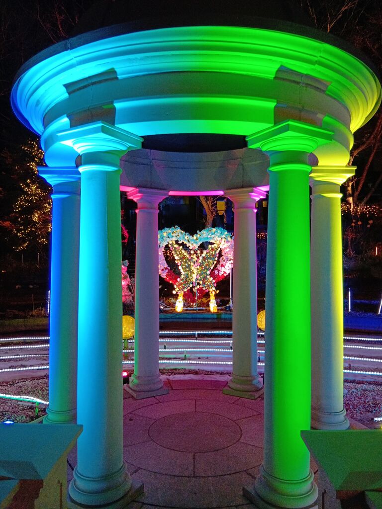 夜間はプロジェクションマッピングを上映してました。内容も教会らしい内容でした。お庭は少しバラが咲いており、秋バラが満開な時にまた見にきたいです。夏休み期間は隣の施設で縁日なども開催されていて温泉だけじゃ無くて色々楽しめます。 (訪問:2025/08/25)