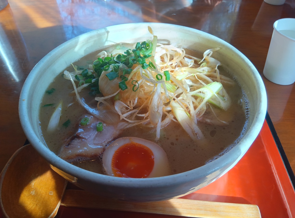 オススメメニューのネギチャーシュー麺W塩を中盛で注文。竹風さんでは、まぜそばや つけ麺を食べていたので、ラーメンを食べるのはだいぶご無沙汰になりました。ごま油の香りが食欲を増します。たっぷりなネギに柔らかチャーシュー、中細ストレート麺がボリューム十分です。 (訪問:2025/12/13)