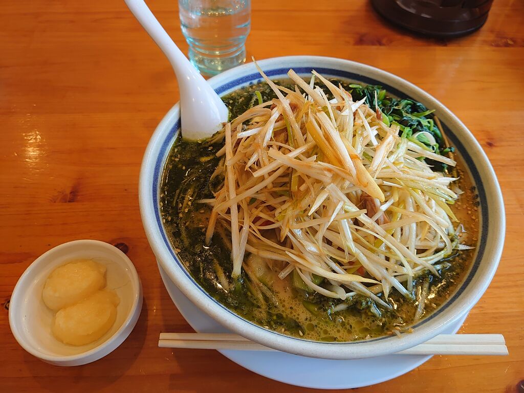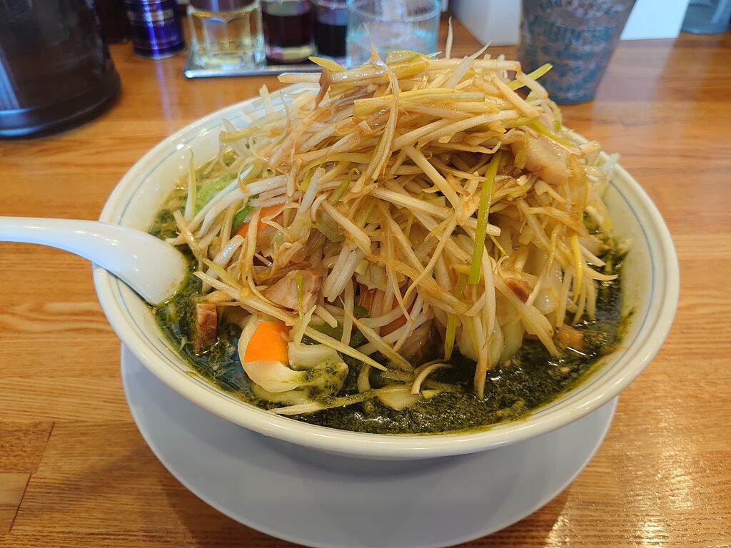 午後の空いてる時間にいきました。バジル野菜ラーメンにネギとほうれん草をトッピング、おろしニンニク中、ニンニク餃子を一枚頂きました。価格改定だそうですが、値段が上がってもモリモリ野菜と美味しいラーメンが変わらぬ味で提供されるなら納得です。美味しいのでおすすめです。 (訪問:2025/12/23)