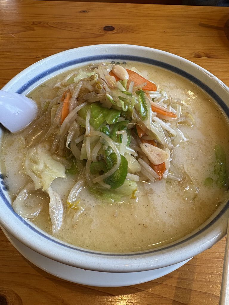 家族で大好きなこちらのラーメン屋さんに夜ごはんで再訪です。普通の野菜ラーメンも美味しいですが、今回は焦がしにんにくのマー油が効いた『こくうま野菜ラーメン』にしました。とんこつベースの濃厚なスープがやみつきになる美味しさです。野菜たっぷりなので罪悪感も薄れます。 (訪問:2025/10/05)