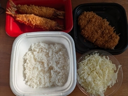 松屋松のやでは1月7日まで海老海老フェアを開催中です。大きな有頭海老をお得に食べることができます。海老は甘みがあり、サクサクプリップリで美味しかったです。このサイズが2本食べられるのは幸せですね。ロースかつもついている定食なのでボリュームたっぷりたっぷりでした。アプリから時間指定で受け取れるのでとても便利です。 (訪問:2025/12/30)