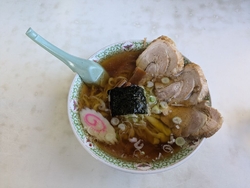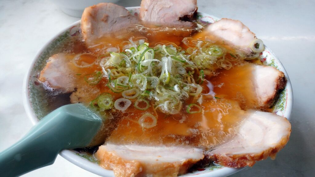 前を通るといつも行列ができていました。とても気になっていたお店です。開店時間に合わせて到着。すでに大勢の人が並んでいます。外で並んで待っていました。屋根などないので暑い日は辛い。チャーシュー麺とネギラーメンと揚げ餃子を注文。麺はどこよりも柔らかい。チャーシューはとろとろ。佐野ラーメンですね(手打ちラーメン 丸富) (訪問:2021/08/13)