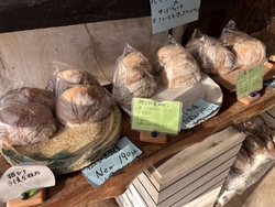 前回購入したストックが無くなってしまったため、またまた神様と一緒に伺いました。今回もたくさん並んだパンの中から「人気急上昇」のポップがどーしても気になり「麦ばたけの波おと410円」と、神様が美味しいと言っていた「ライ麦60%・ひまわりの種580円」を購入しました。どちらもずっしりとおもーい。袋に入っていなかった商品は、味が落ち着く翌日以降に食べた方が良いとのことだったので、一晩寝かせてからいただきました。薄くスライスしてトースターで焼いてからいただきましたが、外側のバリっとした食感、内側のもっちりとした感じ、ほのかに広がる酸味にライ麦の香ばしさがたまりません。ひまわりの種が入った方は、プチプチとした食感も楽しめます。ずっと勘違いしていたのですが、ライ麦の割合で酸味が強くなるわけではなく、酸味は酵母によるものだそうです。この独特の酸味が苦手な方もいるようですが(息子さんはあまり慣れないようです)、私はこの酸味も大好きです。チーズをトッピングして、とろ~っととかしていただくと絶品です。神様もすっかりこちらのパンの美味しさ&健康効果に魅了され、無くなると「大田原に行こう」と言われます(笑)。冷凍庫がいっぱいになってしまうので、何種類も大量に購入できないのが残念ですが、定期的に通いたいお店です。美味しい幸せをありがとうございました。ごちそうさまでした~。 (訪問:2025/11/24)