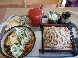 紅葉を見に、近くの蓬莱山に行って来ました。その帰りに、そばでも食べて帰ろうと、思っていました。ところが、野菜、くだものを売っている建物の前に、お風呂入れますの看板を見て、そばを食べてから入ることにしました。そばは、香り良く、歯ごたえがあり、のどごしが良く、とてもうまかったです。天ぷらは、わさび菜とさつまいもと玉ねぎのかき揚げで、塩で食べましたが、これもまたうまかったです。そして、お風呂ですが、330円でとても安いです。内風呂だけですが、お湯の温度が40℃でゆっくりと入っていられます。少し汗ばんだ時には、ひとっぷろ、腹が減ったらそばと、アスレチックもあり、けっこういいところです。 (訪問:2024/11/22)