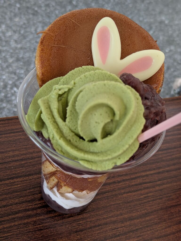 すずらん本舗にキッチンカーがあるなんて知りませんでした。塩まめ大福やお団子などの魅力的なメニューから、手焼きどら焼きとどらパフェをお願いしました。どら焼きはキッチンカーの中で生地を焼いているそうで、出来立てをいただけます。あんこがたっぷりとはさまれていて、優しい甘みを堪能できます。どらパフェは抹茶アイスとどら焼きの皮、あんこがトッピングされ、和菓子屋さんの良いところを詰め合わせたような仕上がりでした。キッチンカーでの和菓子はライブ感があって楽しかったです。 (訪問:2025/10/19)