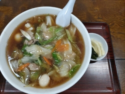 美代志さんはいつ行っても混んでいます。前回は満席で入れず、この日もほぼ満席でした。毎回悩むほどメニューが豊富で今回は広東麺、中華丼、かけうどん、餃子を注文しました。ラーメン類は太麺と細麺から選べます。太麺のモチモチ食感が好きなので太麺をチョイス。野菜たっぷりのあんとしょう油のスープが絡んで食べ応えがあります。餃子の皮は手作りで野菜が多めの餡です。かけうどんなのにワカメがたっぷり入っているのも嬉しいです。次回は何を食べようか楽しみにまた伺います。 (訪問:2025/04/29)