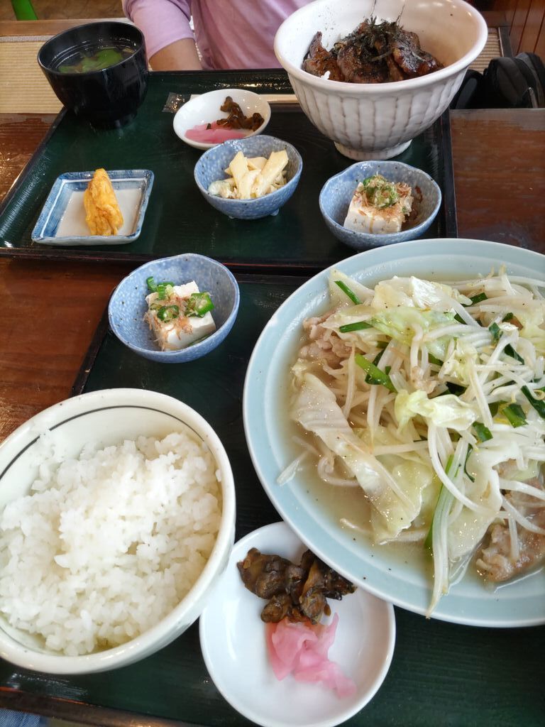久しぶりに伺いました。そしてランチは初訪問です。もつ煮定食、しょうが焼き定食、ラーメンを注文です。飲んでいる方もいて、昼の営業時間でも一品料理が注文できる様です。しょうが焼きも、もつ煮もご飯が進み美味しくいただきました。満席状態で、電話注文した焼き鳥のテイクアウトを取りに来ている方もいてとても賑わっていました。 (訪問:2024/10/26)