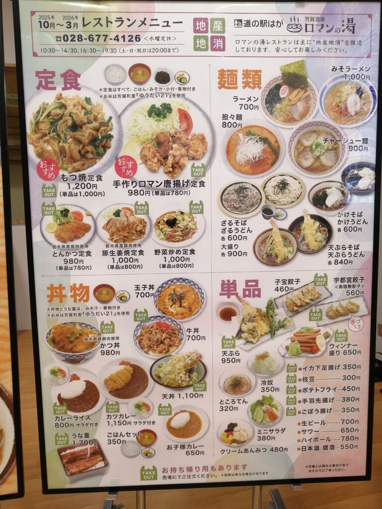 本日の〆の温泉はこちら…私ははじめましての【芳賀温泉 ロマンの湯】さん。広~い館内はたくさんのお客さんで賑わっていました。ヌルヌルとしたお湯が美肌になりそうな感じで良いですね♪夜空を眺めながらお喋りして入る露天風呂は気持ち良くて最高⤴⤴気泡湯はぬるめなので長湯できます。「只今、ポンプ故障のため露天風呂と気泡湯は井水を使用しています」…とのことです。お風呂の後は御食事処で食事をして売店でアイスを買って食べて終了。売店も充実の品揃え…フロアでは卸問屋直売の衣料品が格安価格で販売されていました。いつも足が冷えてしまいますが今日は家に着いてからも足が冷えることなくポカポカ感が続きお湯の良さを感じました(˶ᐢᴗᐢ˶) (訪問:2026/01/25)