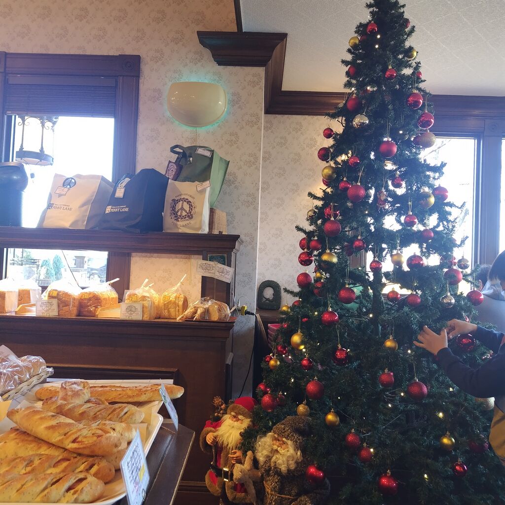 ペニーレインにクリスマスがやってきました!ラインナップにクリスマス仕様のものが増え、気分が上がります。ランチ用にパンを買いに行ったのですが、クリスマスメニューにも手が出ちゃいます。パネトーネはドライフルーツが入っていて、見るからにおいしそうでした。店内の装飾もムードがあるので、イートインでもよさげです。 (訪問:2025/11/30)
