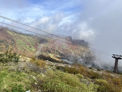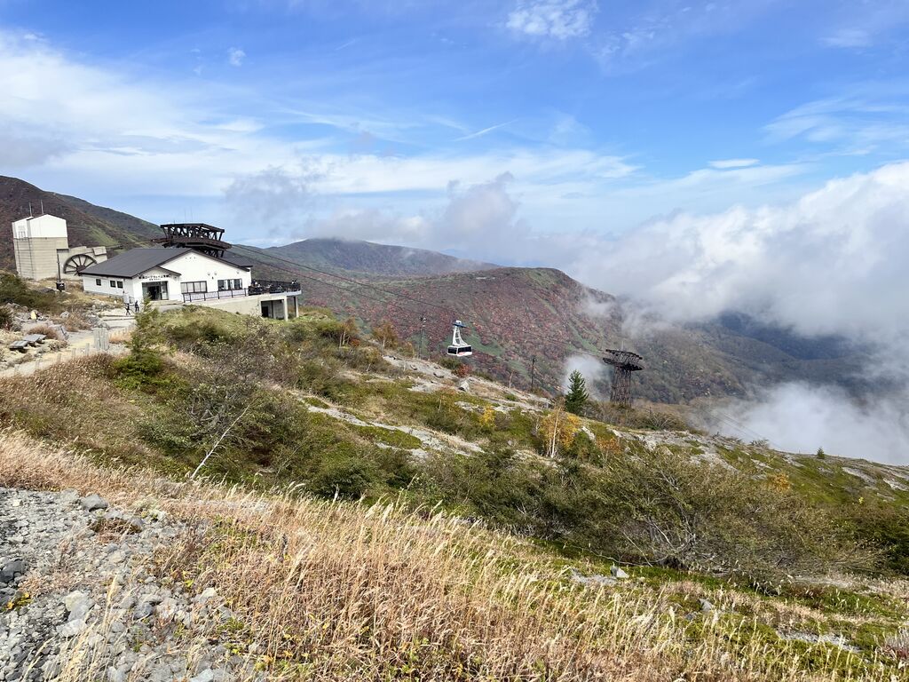 那須岳は紅葉真っ盛り。特に、ロープウェイからの景色が圧巻です! ロープウェイに乗るだけでも、来た価値があります。姥ヶ平辺りが綺麗らしいですが、そこまで歩くのは大変なので、徒歩30分の牛ヶ首へ。途中からずっと素晴らしい紅葉が続きます。「来て良かった!」と登山者の感激の声が聞こえました。山なのでできれば軽登山靴や一枚羽織るものを準備しておくのがおすすめです。小ネタですが、ロープウェイ山嶺駅でなぜか、やみつき岩下の新生姜(生姜のオリーブオイル漬け)が売っていて、なかなかイケました。 (訪問:2025/10/15)