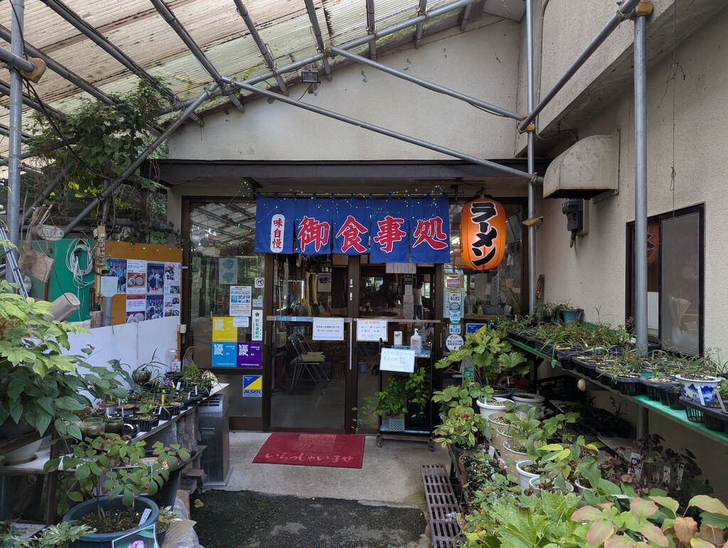 不動滝がお店の後ろに位置し豪快な流れと滝の音を見て感じていただけると思います。食堂では手打ち蕎麦や乳茸すいとん、ラーメン・味噌野菜ラーメン・川魚塩焼きなど、人気の一品です。なお、売店では山野草・国内特定希少種など許可を得て販売しております。