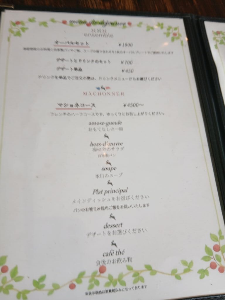 | ◇マショネ コース料理 | 4,500円~ |
