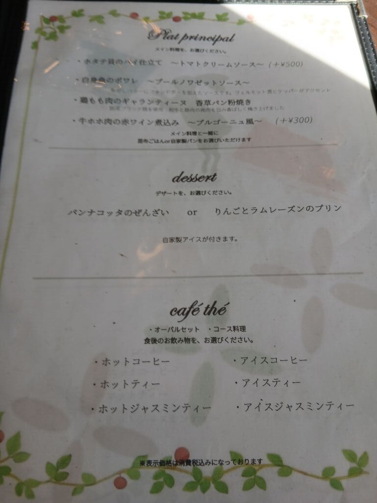 | ◇オーバルセット | 1,800円 デザート(+450円) デザートドリンク(+700円) |