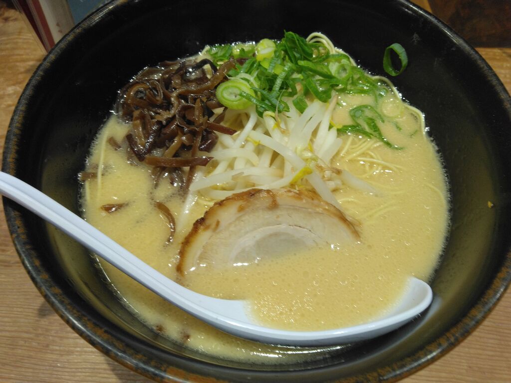 子供のリクエストで訪問。席に着くと店員さんがすぐ荷物入れを持ってきてくださり好印象。注文はQRコードですが、店員さんを呼んでもいいみたいです。白ラーメン細麺バリカタで。メニュー表に細麺ならバリカタお薦めと書いてあったのでその通りに。しばし待つときました豚骨ラーメン!チャーシューも理想的な大きさ、柔らかさ。テーブル上のゴマや高菜を入れて味変して楽しみながらいただきました。まわりの方は結構黒を頼んでいる方が多くて、豚骨といえば白イメージで何も迷わず頼んでしまいましたが、次は黒を頼んでみたいです。大盛りが無料なのも魅力。お支払いは現金のみですのでその点お気を付けて。そして、人気店で行列ですので時間にも余裕を持っていきましょう。 (訪問:2026/01/16)