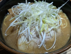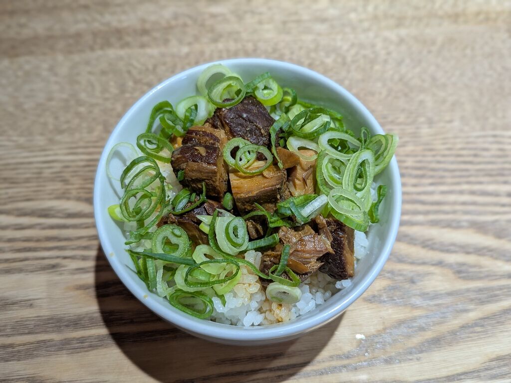 豚骨ラーメンを食べにやって来ました・・・が、煮干しがあるじゃないですか~。魚介、煮干し系が大好きな私はニボに決定!それとサイドメニューで日替わり丼の【うま辛煮込みチャーシュー丼】を注文。煮干しの濃厚なスープにシャキシャキの白髪ねぎも最高です。中細麺をかためでお願いしたので、全体的に引き締まった感のあるラーメンになりました。ピリ辛のチャーシュー丼も美味しい~ご飯が半分ぐらいになったらニボニボなスープをご飯にかけちゃったりしてオリジナル丼として食べてみました。店員さんの対応も良いので人気店なのも分かりますね。ごちそうさまでした。 (訪問:2025/12/11)