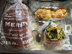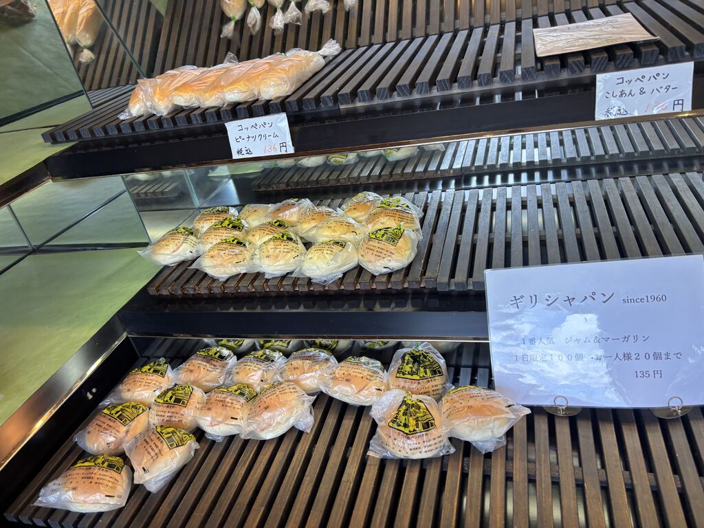 このところ、こちらに伺うとパン以外に毎回買っている「ネオ・チーズクリ-ム」にハマってます。名前が覚えられずこれまで紹介できませんでしたが、今回は蓋の所に商品名が表示されてました。味の説明は何とも難しいのですが、チーズの主張は控えめながらミルキ-な味わいが癖になります。それでいて¥189が今だけ(と言いつつ1か月以上この価格)¥150でお得!外せない商品となりました。パンも財布に優しい価格なので、また買いすぎました。 (訪問:2024/04/28)