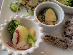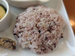 12時半頃来店です。カレーが完売でしたので、旬菜プレート850円の食券を購入してから好きなテーブルへ、座ると水とおしぽりを持ってきてくれ、スープカップに入った味噌汁が届き、少し後にメインのワンプレートが届きました。生野菜サラダ、マカロニサラダ、お豆の入ったキーマカレー、野菜かき揚げ、雑穀米が乗っていました。カレーが食べたかったのでラッキー、どれも美味しかったです。 (訪問:2025/07/11)