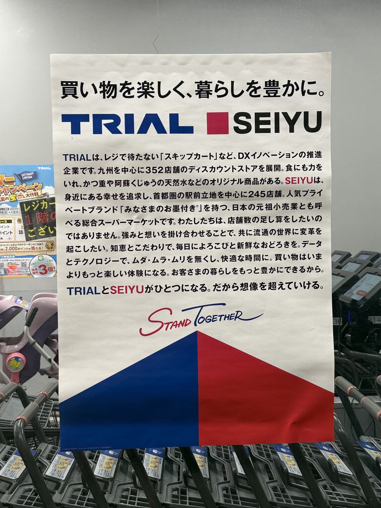 スーパーセンターTRIAL宇都宮店さん、24時間営業なのが助かります(*´-`)トライアルオリジナル商品の「なめらかティラミス」532g本体価格648円からお値引きされていました♪「とけた…いや、消えた?!なめらか革命ティラミス!ふわっと軽やか、でもしっかりコクがある。甘さ控えめ。大人の贅沢スイーツ」などポップを読んだら買わずには居られませんでした(*'ω'*)お肉もジャンボパックお買い得品や、森永クッキー各種お買い上げで10ポイント付いたりとついつい手に取ってしまいました(^^;)清掃ロボットがフロアを巡回して居て微笑ましかったです☆ (訪問:2025/08/18)