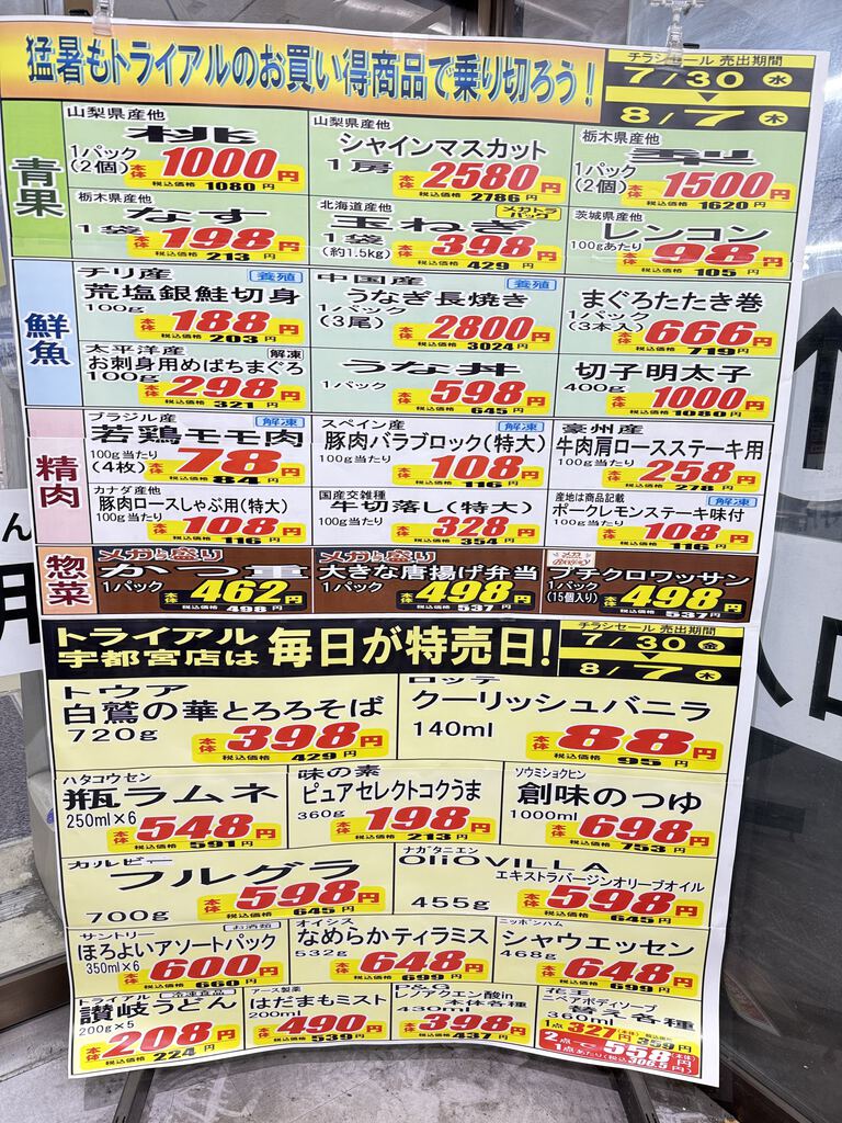 スーパーセンターTRIALさんで、急遽ストッキングの在庫がない事に気が付き夜買いに行きました(^_^;)こういう時に24時間営業はほんとありがたいです♡お会計は一階でした。トライアルのPB商品「水切り不織布」は本当コスパ高いです!桃や白ナスなど生鮮品もいつでも買えるので重宝しています(*'ω'*) (訪問:2025/07/31)