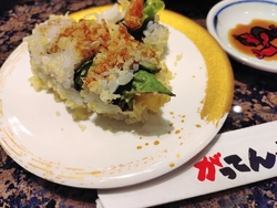 平日時間があったので、家族でお寿司食べたいね〜からのこちらへ。まずは、いつもの まぐろ三昧を注文。変わらず美味しかった。あと。いつもみなそれぞれ同じものを注文しているなか、たまに違うものを食べよう!で、私は、クランチロールを注文。エビフライ(エビ天??)を海苔、大葉、酢飯で巻き、サクサク衣。(やや相違ありか、すみません)そこに甘いタレがかかっていて 美味しかった。まだまだ食べてない美味しい品がありそうです。次も新たに発見しに行きます! (訪問:2026/01/22)