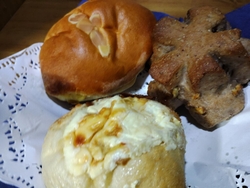 美味しそうなパンが並ぶ店内。雨の日だったせいか、他にお客さんもいなかったのでゆっくり選べました。あれもこれも食べたくなりますが、吟味した結果「じゃがバター」「クリームパン」「揚げパン(きなこ)」「くるみパン」を購入。“じゃがバター”はじゃがいもが半分とベーコンにたっぷりのマヨネーズ。パンが柔らかかったので食べやすくてボリューム満点。“クリームパン”はカスタードクリームがぎっしりで、程よい甘さが美味しい♪“揚げパン”はもっちりしていて、きなこもたっぷり。“くるみパン”はくるみの香ばしさがたまりません。どれも美味しいパンで、また次回は違うパンを食べてみたいです。ホットコーヒーのサービスも嬉しいです。 (訪問:2025/10/11)