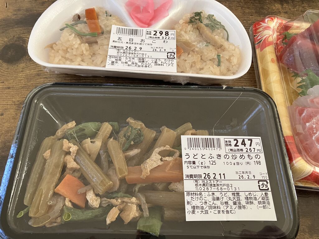 那須に用事があった際、帰り道に寄り道しました。おこわとふきの炒め物、お刺身に帰り道に食べちゃいましたが唐揚げを購入しました。お惣菜の種類が豊富でどれも美味しいので大好きなスーパーです。お刺身も美味しいのでオススメです。 (訪問:2026/02/09)