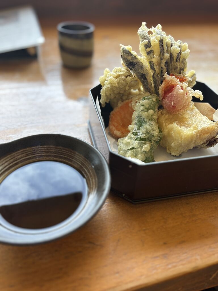 9時半過ぎに伺って、2巡目の時間を指定されました。混んでいてもこうして大体の時間が決まっているので、ダムを散策したり、道の駅しおやへ足を運んだり、と余裕が持てるのがいいところです。空気も良くて、なんだか心穏やかになりました。指定された時間の少し前に戻りましたが、店員さんが手際よくダム側のカウンター(掘り炬燵風に足が伸ばせます)に案内してくれました。季節限定の湯波蕎麦をチョイス。メニュー写真では、小洒落た女子向けだわー、と思いました。が、届いたら結構なボリューム!野菜天ぷらも頼みましたが、ちょっと頼みすぎてしまったかも…と思ったくらい。湯波も揚げと生の2種類が添えられて…という風でなく、ガッツリ乗っていて嬉しかったです。蕎麦湯も美味しかったのに、お腹ポンポンであまり飲めなかったのが残念でした…。ご馳走さまでした! (訪問:2025/10/04)