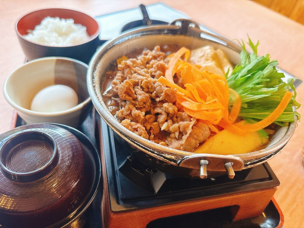 超久し振りの来店((((oノ´3`)ノ「豚ロースすきやき定食ランチ」を注文。ごはん、うどん、中華麺、たまごなど、いくら追加注文してもタダ(@ ̄□ ̄@;)!!! 価格高騰中の「ごはん」も旨い(〃▽〃)♡ ネギや、もみじおろしなどの薬味も頼み放題ヾ(≧▽≦)ノ こんな神の領域のようなお店の存在は非常に貴重(´◉◞౪◟◉) お味噌汁を零してしまったお客さんたちがいて、大騒ぎでしたが、スタッフさんが丁寧+スマートな対応で、もぅ仏の領域(笑)また絶対伺います(((o(*゜▽゜*)o))) (訪問:2025/05/16)