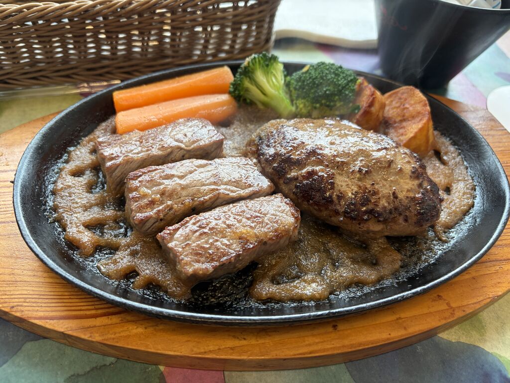 お正月(1/3)に、ランチでミックスグリルを食べました。ステーキとハンバーグの最強コンビで、特にハンバーグの肉汁が美味しかったです。また、天井が高く、明るい店内の雰囲気がよく、ゆっくりランチを楽しむことが出来ました。 (訪問:2026/01/03)